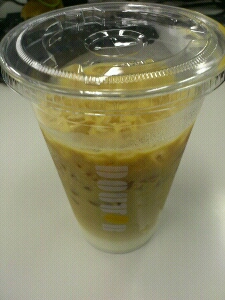 ハニーラテ。 ハチミツの日だったので購入しました。(8月3日の話) 美味しい?と聞かれたので 氷が入って美味しい! と答えたらものすごくがっかりした顔をされました。